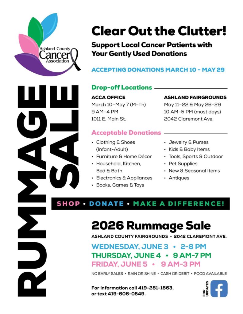 Ashland Co Cancer Association’s MEGA Fundraising Rummage Sale