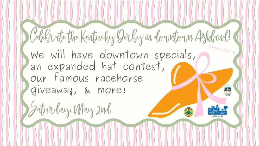Come celebrate “the greatest two minutes in sports” all day long in Downtown Ashland! There will be roses, there will be mint juleps (because there will be a DORA!), and of course, there will be our famous horse giveaway- shop downtown and get a horse. If your horse wins the Derby, you will win a gift card to your favorite downtown restaurant! New this year- we are expanding our hat contest (don’t have a hat? Good news- we got you!